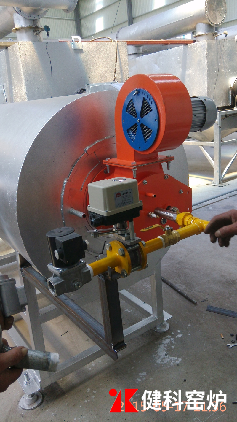 需要加熱的冷空氣通過選配的鼓風機強制送入熱風爐加熱,溫度升至設定溫度后從熱風出口送出,進入后續干燥設備。